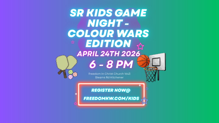 Sr Kids Game Night – Colour Wars Edition is happening Friday, April 24th from 6–8pm! Kids grades 4-6 will enjoy competing together with active games, and enjoy snacks and prizes together. Kids are encouraged to invite a friend—all attendees (including friends) must be registered. We can’t wait for a night full of fun, laughter and connection!